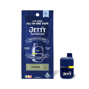 - Disposable | IndicaJetty ExtractsJetty All-in-One Mini Tank Vape OCal Solventless 1g G-Force76.72% THC0.14% CBD$60.00each